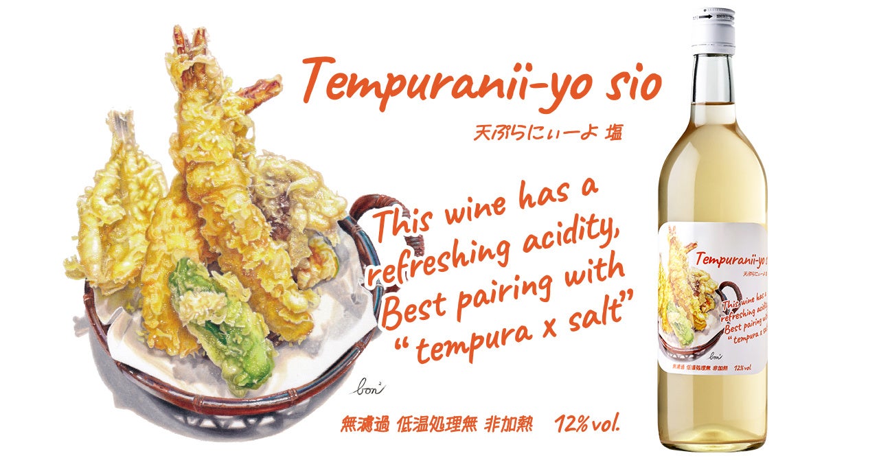 エビフライ党の為に造られた日本ワイン「エビフリャー アウネン トロッケン」塩で食べる天ぷら用に造られた白ワイン「天ぷらにぃーよ」新発売