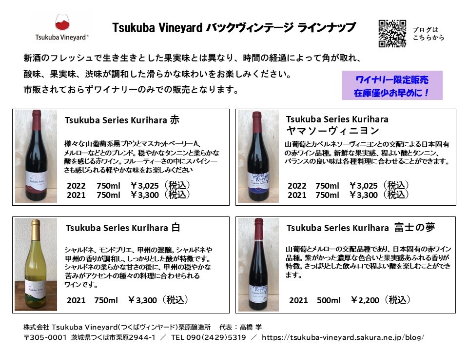2024年の新酒も今月中には販売開始できますが、年数の経ったバックビンテージワインの良さも捨てがたいものがあります。