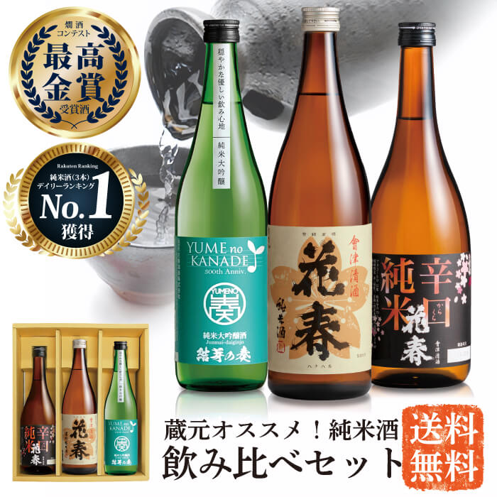 【楽天市場】蔵元オススメ! 花春 純米酒飲み比べセット【送料無料】 日本酒 四合瓶 720ml 酒 辛口 贈答 贈り物 プレゼント ギフト お祝い 内祝い 父の日 退職祝い 還暦祝い お返し 誕生日 純米大吟醸 福島 会津 福袋 バレンタイン ホワイトデー:花春楽天市場店