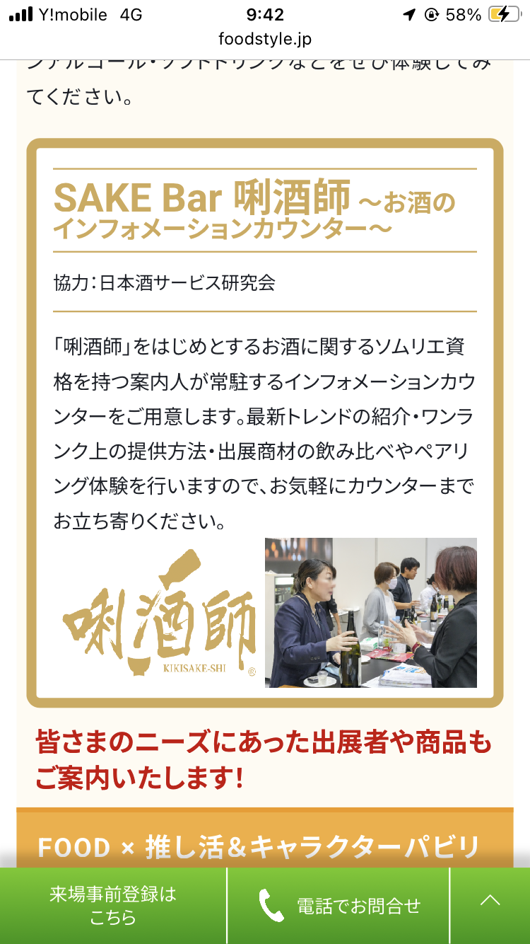 昨年のブログレポート: 「FOOD STYLE Japan Special Contents 〖特別企画〗SAKE Bar 唎酒師 ~お酒のインフォメーションカウンター~終了しました‼️」
