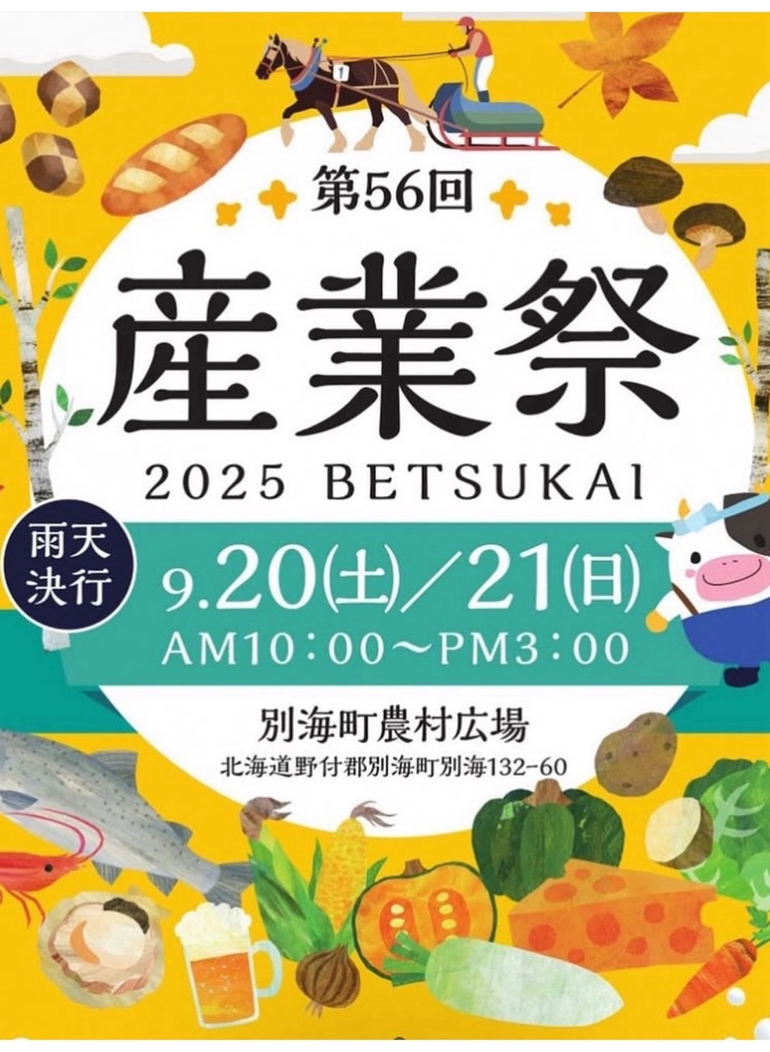 2025年9月20日(土)・21日(日)の両日、10:00~15:00まで別海町農村広場で開催されます(公式案内はこちら)。