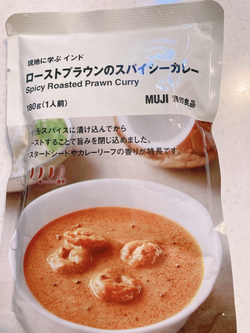 今回は、無印良品のレトルトカレー「現地に学ぶ インド ローストプラウンのスパイシーカレー」を食べてみました。
